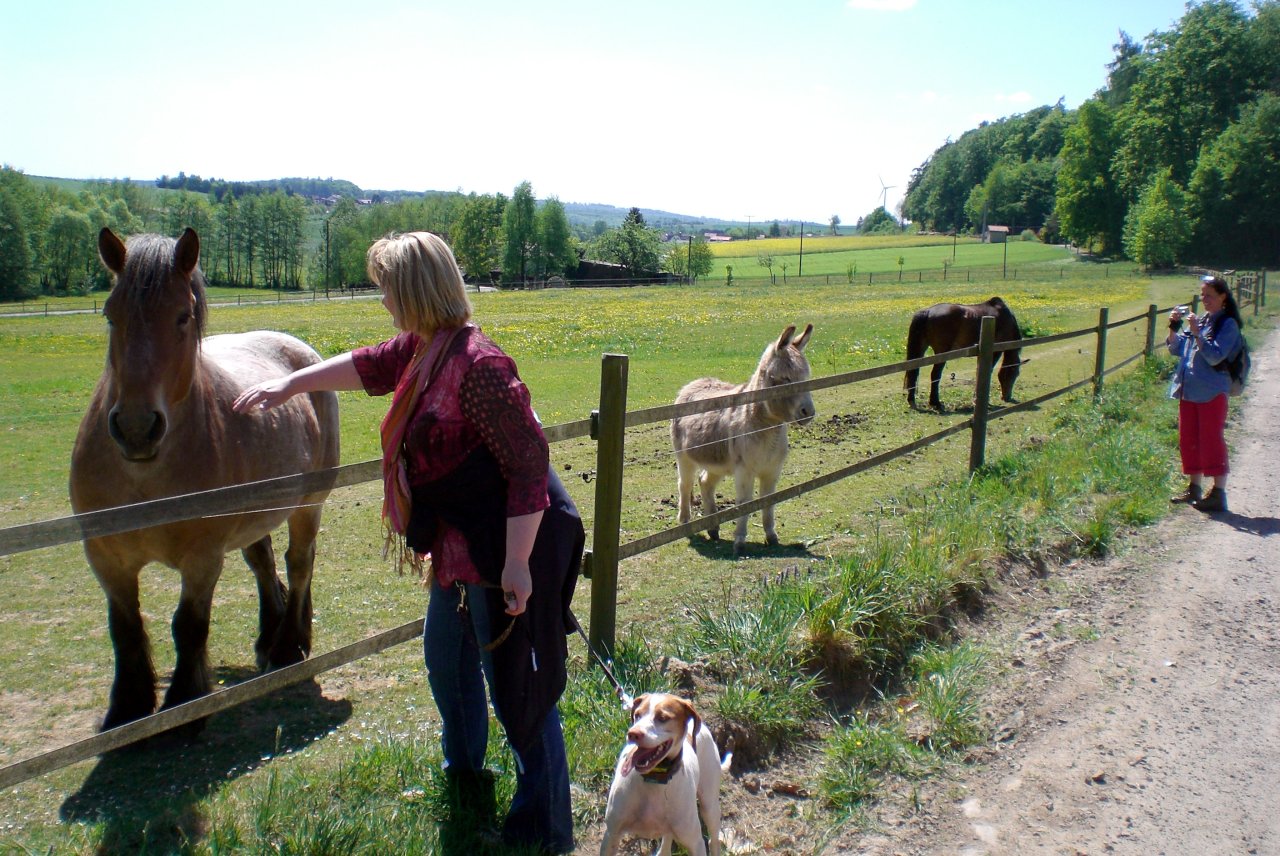 Heike streichelt das Pferd